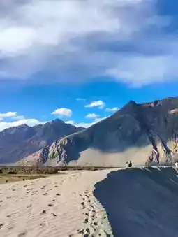 Nestled deep in the Himalayas of Ladakh, Nubra Valley feels like another planet – a surreal mix of cold desert, snow-capped peaks, and flowing rivers. It's where sand dunes meet icy mountains. 🌨️🏜️