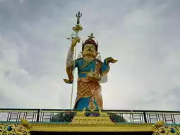 The gigantic statue of Guru Rinpoche and the magnificent Buddha statue in the main hall