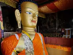In one corner of the monastery, a gigantic statue of Guru Rinpoche (Padmasambhava) is enshrined, its gentle gaze watching over the entire valley.
