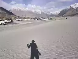 The trip to the Hunder sand dunes in Nubra Valley was one of the more surreal experiences I’ve had. After driving through the dramatic mountain roads and high passes of Ladakh, suddenly arriving at a stretch of desert with fine sand felt almost unreal. The dunes sit right between rugged mountains and the Shyok River, so the contrast of landscapes is striking — snow peaks in the distance, river flowing nearby, and then these soft rolling dunes in the middle.