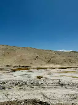 The area around the hot spring is a mysterious land colored yellow and white by sulfur and mineral deposits. Surrounded by the desolate mountains of Ladakh, you'll feel as if you've been transported to another world.