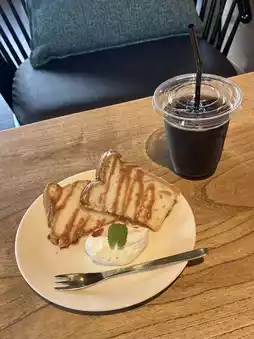 I ordered an iced coffee and a salted caramel chiffon cake. Since desserts couldn't be taken outside, I got the iced coffee in a disposable cup to go.