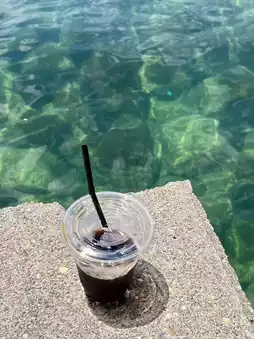 After finishing the dessert, I stepped out onto the terrace with my coffee. It felt like I could almost touch the sea while sipping my coffee at such a close distance.☕️