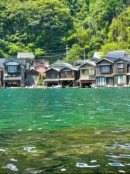 Unlike typical fishing villages, the wooden "funaya" (boat houses) here are semi-aquatic— the lower level serves as a boathouse where fishing boats gently sway with the tide, while the upper level is a living space where smoke curls up from the water's surface. Rows of these houses cling tightly to the coastline, connected by waterside walkways, resembling floating homes in the bay—serene and primitive.⛵🌅