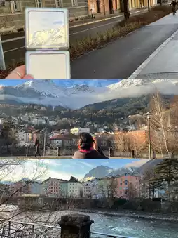 The River Inn, which I encountered along the way, was another highlight of my Innsbruck trip. Standing on the riverside promenade, the contrast between the snow-capped mountains and the Old Town is breathtaking, like a painting. The view of the Old Town from the bridge over the river, in particular, makes time seem frozen.