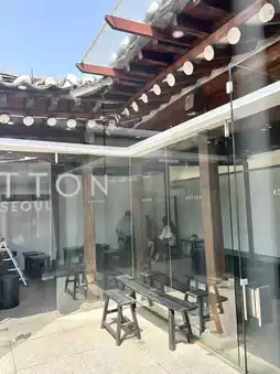 A stylish Korean-style cafe with a glass exterior in Insadong☕️
