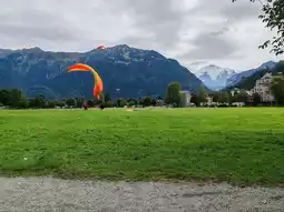 The Höhematte Square in the Swiss town of Interlaken is a vibrant green space full of life. At its center lies an expansive lawn where people relax and enjoy leisurely moments, and paragliders can often be seen drifting gently down against the backdrop of the distant Alpine peaks, creating a unique and captivating scene. The square is surrounded by colorful flower beds, where a variety of blooms flourish, transforming the entire area into a magnificent garden. Combining the grandeur of nature with the delicacy of human craftsmanship, Höhematte is an ideal place to experience the charm of Interlaken.
