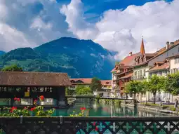 Interlaken is a beautiful tourist city in Switzerland, located in the Canton of Bern. Nestled between two lakes, Lake Brienz and Lake Thun, it serves as a gateway to the Alps, particularly the Jungfraujoch peak.