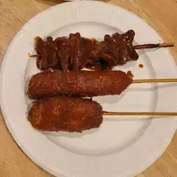 ︎︎︎︎Ordered a miso skewer set (pork skewer/chicken skewer/dote-ni) and a single kushikatsu!