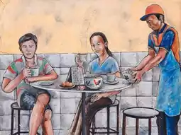 In the pictures on the walls, you can see elements of Malay, Chinese, and Indian cultures. In most Chinese pictures, they use light colors. In return, in Indian pictures, you can see vibrant colors, especially orange, which has roots in Hindu and Tamil religions.