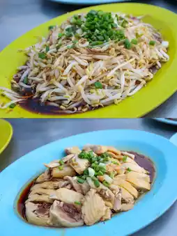Bean Sprout Chicken is somewhat similar to Hainanese chicken rice, with tender chicken and locally grown bean sprouts that are plump, crisp, and juicy.