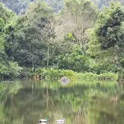 Visitors can walk around the lake to enjoy the greenery surrounding, and there is a mini space of rabbits and some Chinese ducks swimming on the lake