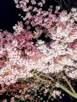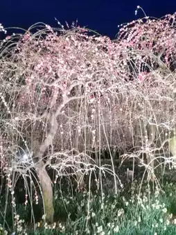 I headed to Nabana no Sato. While the main attraction was the illuminations, the vast 300,000-square-meter grounds also featured beautiful cherry blossoms and tulips during this season. Additionally, there is a natural hot spring called "Nagashima Onsen Sato no Yu" and eight restaurants offering Japanese, Western, and Chinese cuisine, allowing for a leisurely visit. It took about an hour to get there from Nagoya by train and bus. Cherry blossoms were in full bloom, and although daffodils and plum blossoms were nearing their end, a few remained. The nighttime light-up was extensive and impressive.