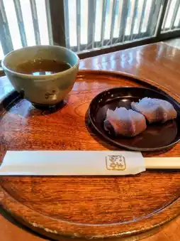 Made with rice flour, this mochi has a unique texture, with a roasted surface on both sides and a smooth red bean paste filling. Unlike Akafuku, where the bean paste is on the outside, Henba Mochi has the paste inside, resembling a grilled daifuku. It was named "Henba Mochi" because it was served at a ferry station near the Miyagawa River, where travelers would return their horses. I enjoyed it at the Oharaimachi branch of Henbaya, which has a second-floor eat-in area.