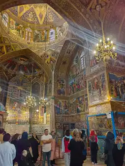 The Vank Cathedral in the Armenian district is just a tourist spot, without faith and candles, and the Iranian flag stands outside the dome church. Foreigners pay an entrance fee of 2 million rials