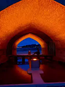 The Si-o-se-pol Bridge and Khaju Bridge span the not-so-wide Zayandeh River. At night, it's lively with locals singing and dancing. Unfortunately, the riverbed was dry when I visited, so I couldn't capture the reflection of the bridge arches in the water.