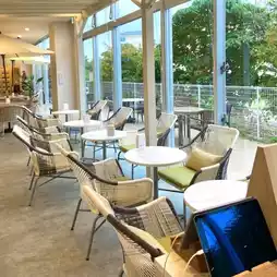 The atmosphere is like a stylish cafe with a tropical feel 🤍