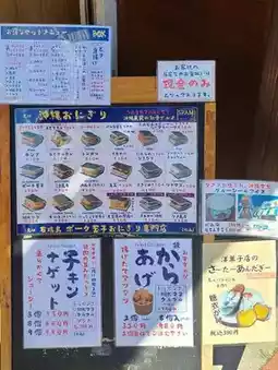 The menu includes 18 types of Okinawan onigiri ranging from 380 yen to 630 yen, fried chicken, chicken nuggets, and sata andagi, and I simply chose the pork and egg onigiri.