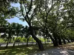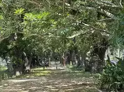 The sight of the large yarabu trees growing over the road is beautiful, and it provides a comfortable place to spend time, blocking out the tropical heat and dazzling light.
