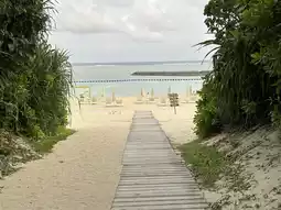 This beach is open to the public, but is managed by the hotel and offers a wide range of rental services.