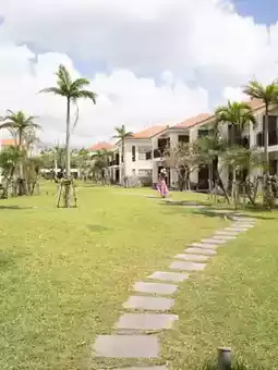 A large resort hotel. The hotel is easy to get around because they pick you up and drop you off in a cart.