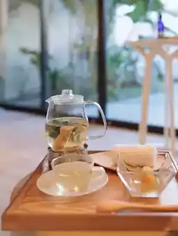 The after-drink is ginger and lemongrass herbal tea with shell ginger jelly. It's very easy to drink and warms the body!