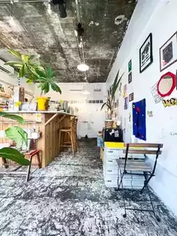A cafe with a great atmosphere, with a large glass entrance that makes it easy to enter, giving it the feel of a coffee stand