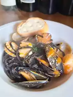 I found this place when I was getting tired of Okinawan food♪ I had the seafood pescatore (fresh pasta with squid ink) for lunch✨