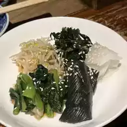 The a la carte dishes such as assorted namul and water kimchi are carefully prepared, and you will want to order them again and again, not just as a palate cleanser.