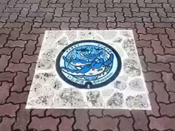 A manhole cover of Mantine Archerfish at the remote island terminal. Don't miss it because it pops out! ④730 Monument