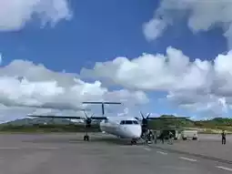 It's a small propeller plane, so it's a so-called offshore stop, and you can walk right up to the plane and board.