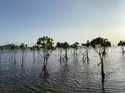I asked the locals, and they said that when we say "mangrove", we mean a group of "mangrove trees" (a dense cluster), and that the sight of a single mangrove tree growing independently is rare and popular.