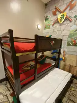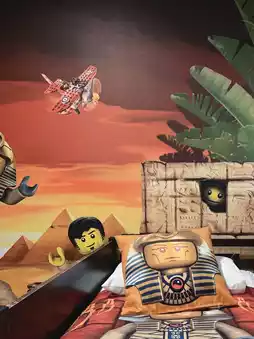 I stayed in a Kingdom-themed room, which was decked out with whimsical medieval details, from shield motifs to treasure chests and a dedicated bunk-bed area for kids. The room felt like a themed storybook brought to life, with clever touches like a LEGO building station and an in-room treasure hunt that kept the excitement going well into the evening. The separate sleeping area for children, complete with their own TV, was a thoughtful touch that added comfort and privacy for families.