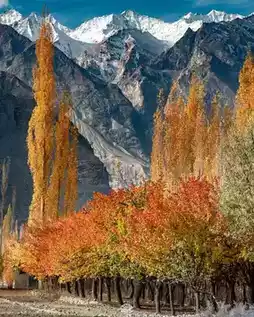 Visiting Hunza Valley in autumn was one of the most breathtaking travel experiences I’ve ever had. From late September to early November, the entire valley transforms into a golden wonderland, with apricot, poplar, and cherry trees turning brilliant shades of yellow and orange. The contrast between the autumn foliage, snow-dusted peaks of Rakaposhi and Ultar Sar, and the deep blue sky is simply magical.