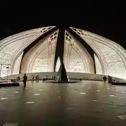 The Pakistan Monument is a National Monument and Heritage Museum located on the Western Shakarparian Hills in Islamabad, Pakistan. The monument was constructed to symbolise the unity of the Pakistani People. Its elevation makes the monument visible from across the Islamabad-Rawalpindi metropolitan area and is a popular tourist destination. Covering a total area of 2.8 hectares, the monument is shaped as a blooming flower petal-shaped structure built of granite, with the inner walls of the petals inscribed with the outlines of Lahore Fort, Badshahi (Emperorโs) Mosque, Khyber Pass and Minar-e-Pakistan.