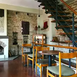 THIS COZY CAFE OFFERS GOOD FOOD AND COFFEE. IT IS A UNIQUE PLACE TO ENJOY GOOD FOOD AND ALSO THE ARTISTIC ATMOSPHERE