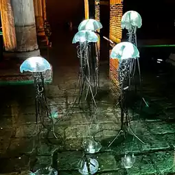 The sight of the dimly lit columns rising from the water surface was fantastical.