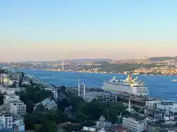 Today, Istanbul is full of color and vitality. Amid the enchanting scenery of the Bosphorus Strait, I encountered the Royal Caribbean's 'Voyager of the Seas' cruise ship. This giant vessel, like a floating city, carries countless tourists across the blue ocean.