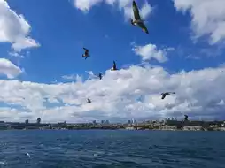 On a sunny day, you'll encounter the incredibly romantic sunset and twilight over the Eurasian Strait. Sit on the left side of the boat for the best views. As you enjoy the evening breeze, you'll see ancient buildings and passing ships on both sides of the strait. The deep blue sea reflects the purple sky, and seagulls occasionally circle around, accompanying you on your journey. This moment of romance will be remembered for a long time! Happiness and romance are made tangible. What you see with your eyes is truly a feast for the senses. A cruise on the Bosphorus Strait is a must when you visit Istanbul!