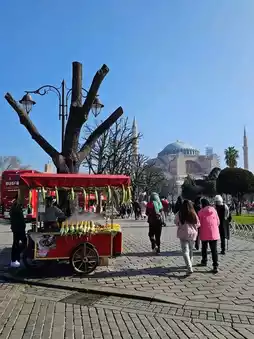 If you are tired of walking, you can have some roasted corn (Mısır) or chestnuts (Kestane), which are the most common street snacks for Turkish people in the afternoon. It is especially delicious to eat while walking near the Galata Bridge and looking at the sparkling waters of the Golden Horn.