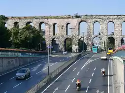 "A huge stone arch suddenly appears in the middle of Istanbul. That's the Valens Aqueduct. Built in the 4th century during the Roman Empire, this aqueduct still has a spectacular presence.