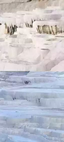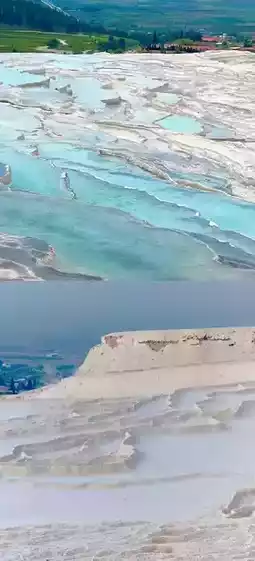 Sunrise: Step barefoot on the Pamukkale travertine terraces. The secret to the constant water temperature of 37℃ is that a broken Roman aqueduct is still transporting geothermal heat.