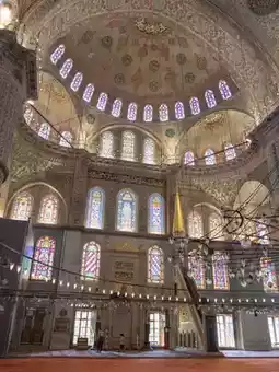 The walls are decorated with about 20,000 Iznik tiles, and the delicate blue pattern is the origin of the name "Blue Mosque".