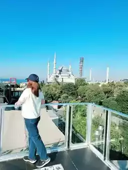 Situated between the Blue Mosque and Hagia Sophia, Seven Hills Restaurant boasts a prime location, making it the best spot for capturing panoramic views of these two iconic structures. The restaurant is located on the top floor of a building and features an open-air dining area, offering a 360-degree unobstructed view.