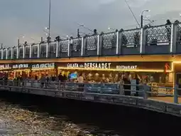 Galata Bridge is a double-decker movable bridge, about 490 meters long and 42 meters wide. The upper floor is for vehicles and pedestrians, and there are restaurants and cafes on the lower floor. These restaurants and cafes all enjoy unbeatable views, so the prices are definitely not cheap.