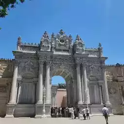 Dolmabahçe Palace is an imperial palace of the Ottoman Empire, showcasing stunning architecture that blends modern European styles with traditional Ottoman design. The palace features numerous rooms adorned with luxurious decorations and chandeliers. It is situated along the Bosphorus Strait, offering a pleasant atmosphere with views of the sea and the city.
