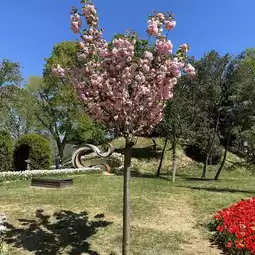 • 🌼 Cherry blossoms and spring flowers planted in intricate patterns.