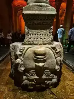 As you step inside, you’ll be surrounded by 336 marble columns, dimly lit and reflected in still, glimmering waters. The atmosphere feels almost magical — a place where ancient engineering meets timeless beauty. Don’t miss the iconic Medusa heads, used as column bases, which add an air of myth and legend to the experience. 🐍✨