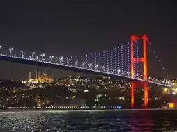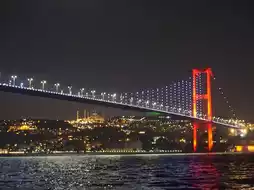 The Bosphorus Bridge, known officially as the 15 July Martyrs Bridge and unofficially as the First Bridge, is one of the three suspension bridges spanning the Bosphorus strait in Istanbul, Turkey, thus connecting Europe and Asia. The bridge extends between Ortaköy and Beylerbeyi.