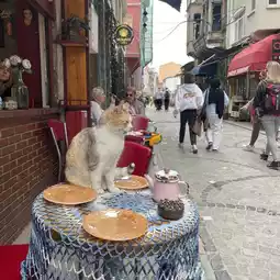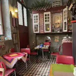 Cafe Naftalin K This Cafe is a popular spot for IG check-ins. You can take beautiful pictures online, and there are also cats that will come over and enjoy coffee with you. The location is in the Balat district. We ordered a cup of Cappuccino and a cup of rose-flavored hapoHerbal Tea. The herbal tea tasted very fresh and the coffee taste was okay.